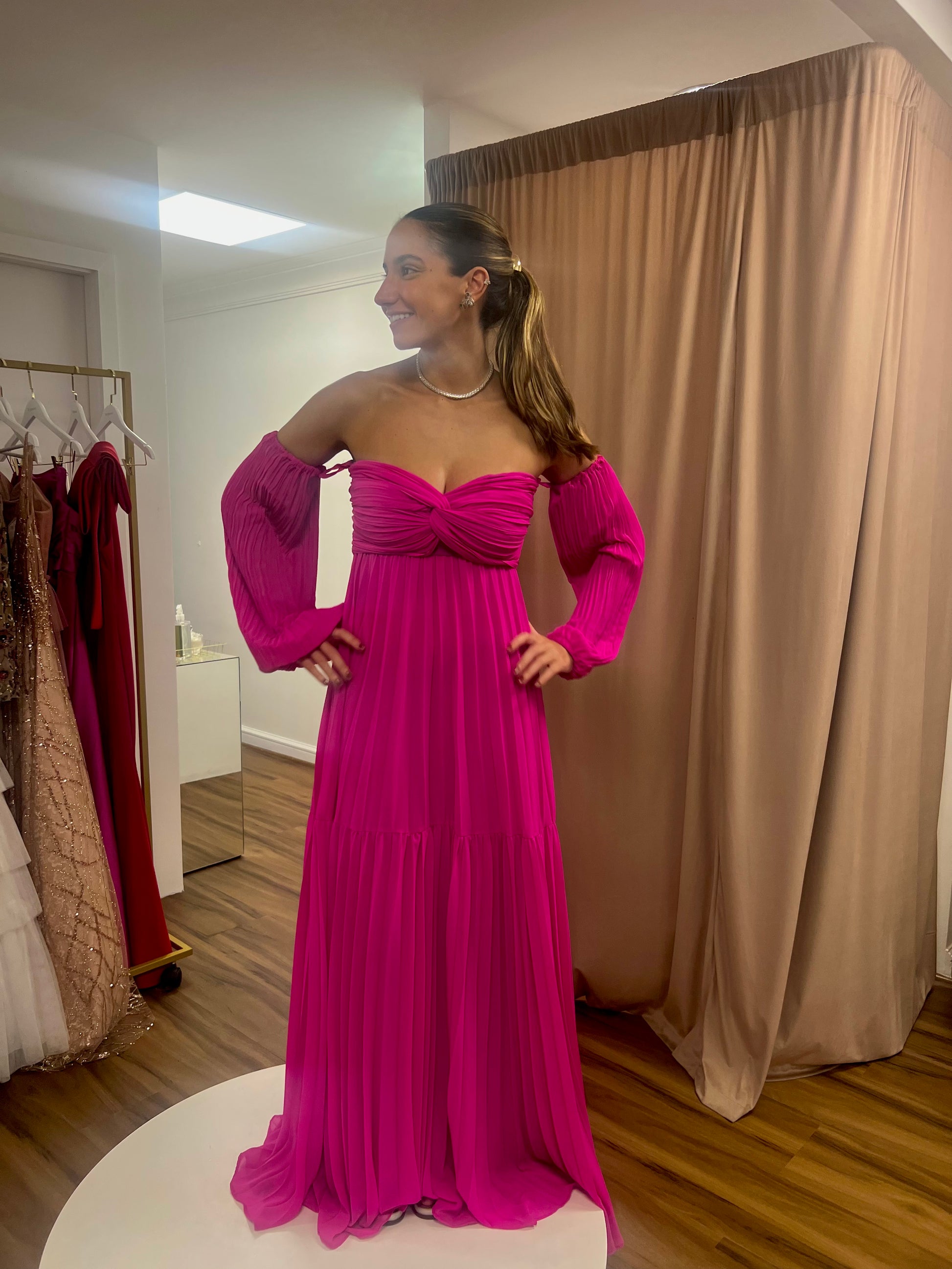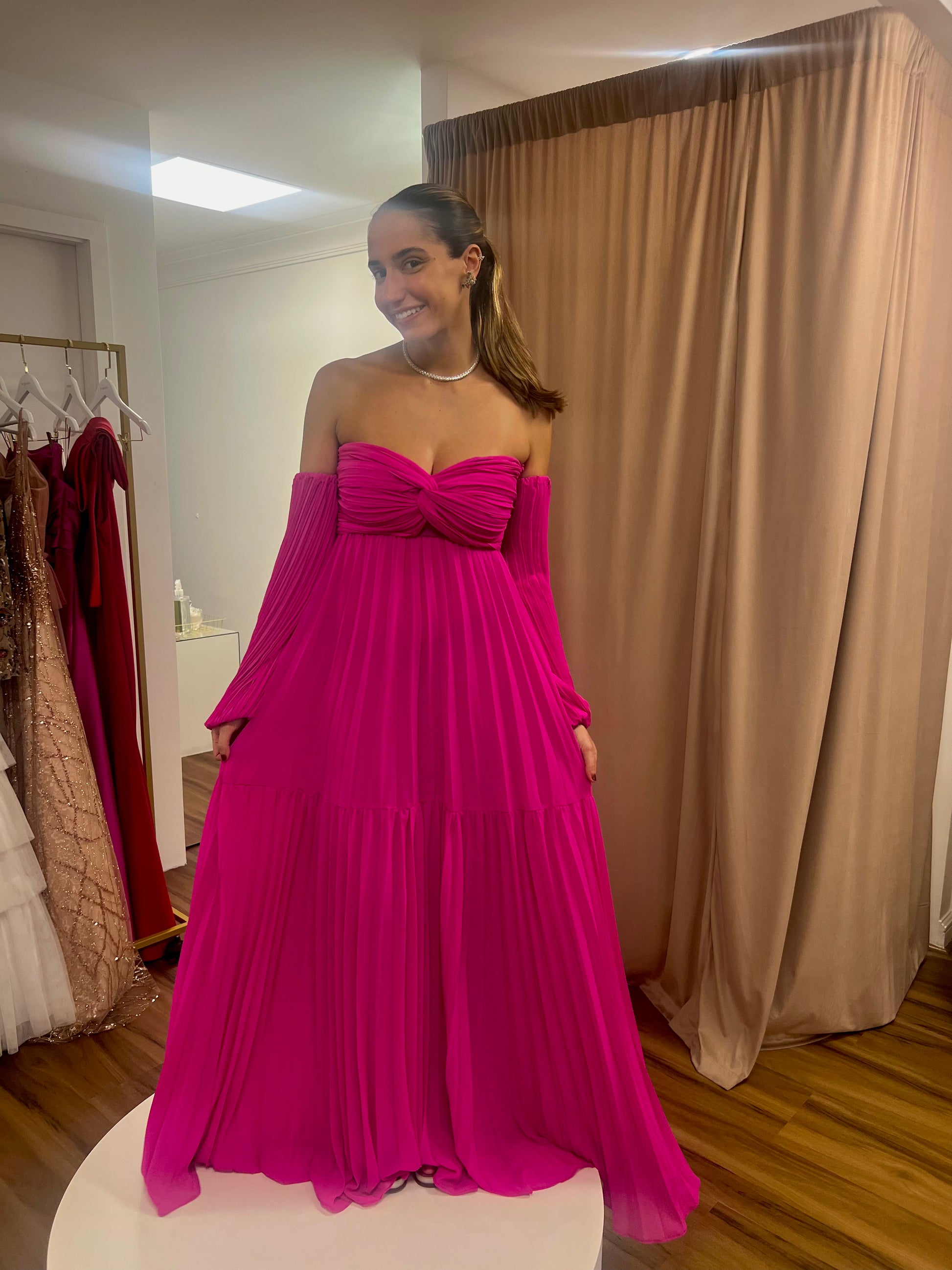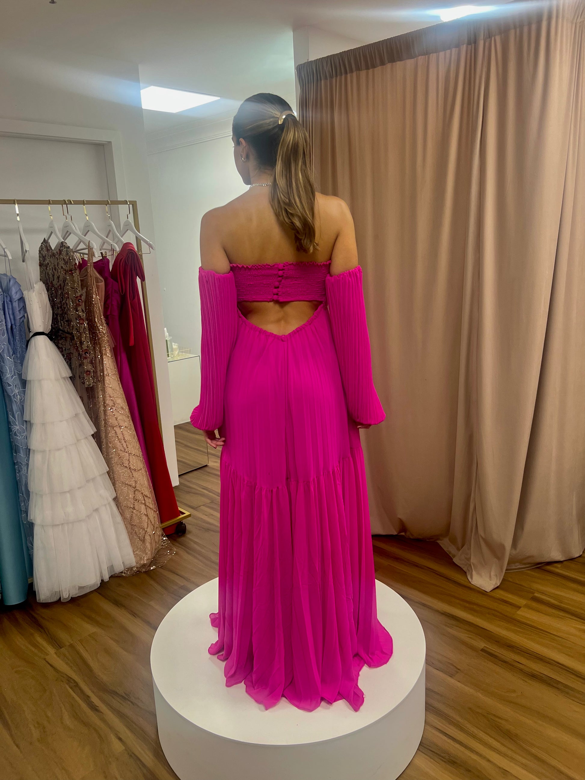 VESTIDO LONGO ROSA PINK DA MARCA BY DUDA CURIMBABA, CONFECCIONADO EM LINDO TECIDO FLUIDO, LEVE E CONFORTÁVEL, TOMARA QUE CAIA COM DETALHAMENTO EM NÓ. POSSUI MANGAS LONGAS REMOVÍVEIS, PRESAS POR UM BOTÃO FORRADO. SAIA EM FORMATO EVASÈ, FECHAMENTO POSTERIOR POR BOTÕES NO BUSTO E ELÁSTICO NA CINTURA, CONTÉM FORRO.